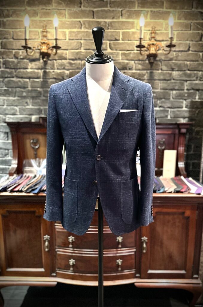 ブルーと黒糸で織り上げられた色味は明るさを抑え、くすんだネイビーのような独特の色味でいい味が出てます。