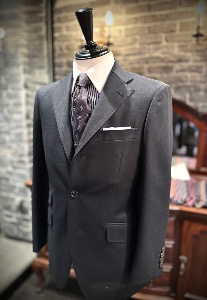【お客様仕上がり品 国産濃紺シャドーチェックスーツ】