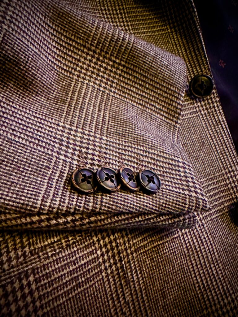 釦は数量限定の水牛ビンテージ釦!!こういう生地との相性が抜群ですね♪