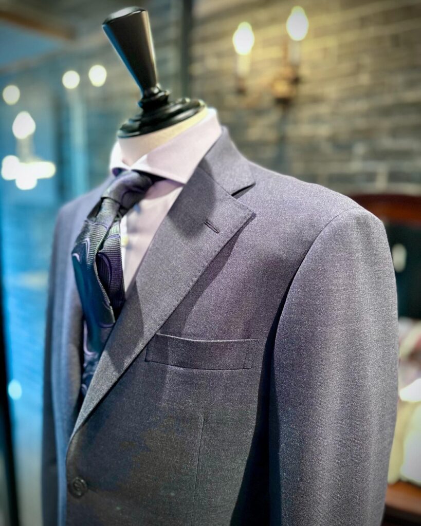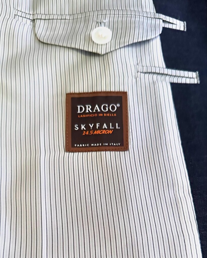 以前にもご紹介させていただきましたが、繊維は驚異のsuper180’sながら、その究極に極細の繊維で40番手という太糸をつくり織り上げることからしっかりとした生地感なんです!!