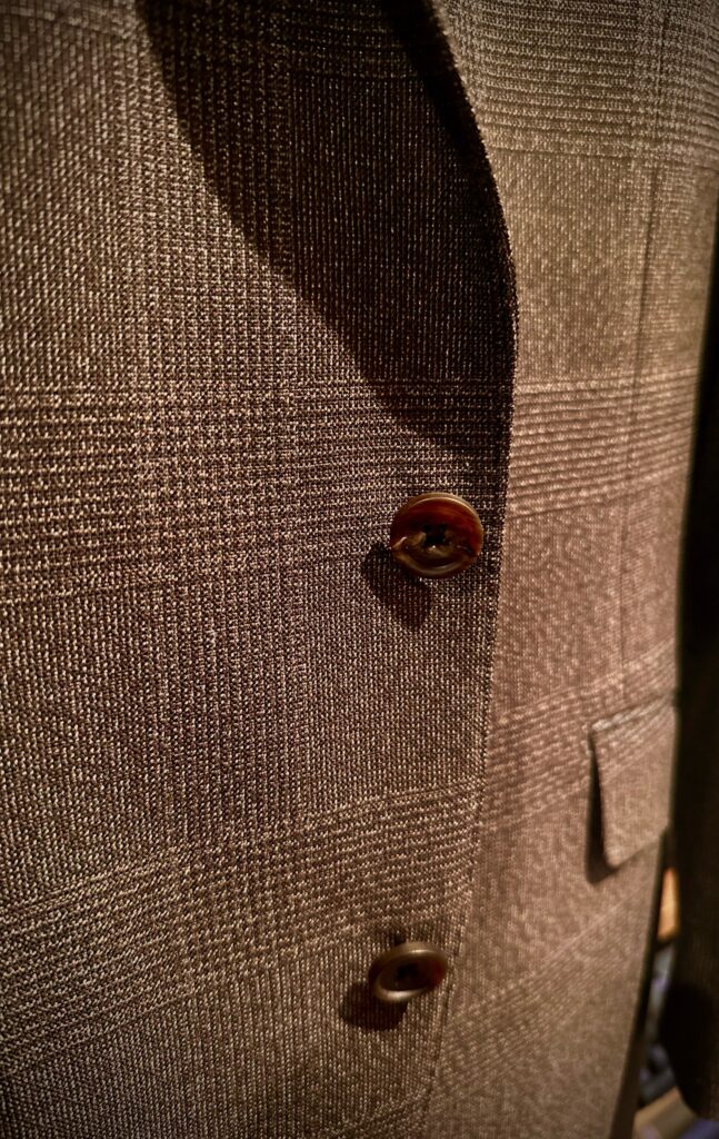 こちらの生地は尾州で織られている国産生地なのですが、ハリコシが非常にしっかりしておりスーツになると立体的に仕上がり本当に仕立て映えします。