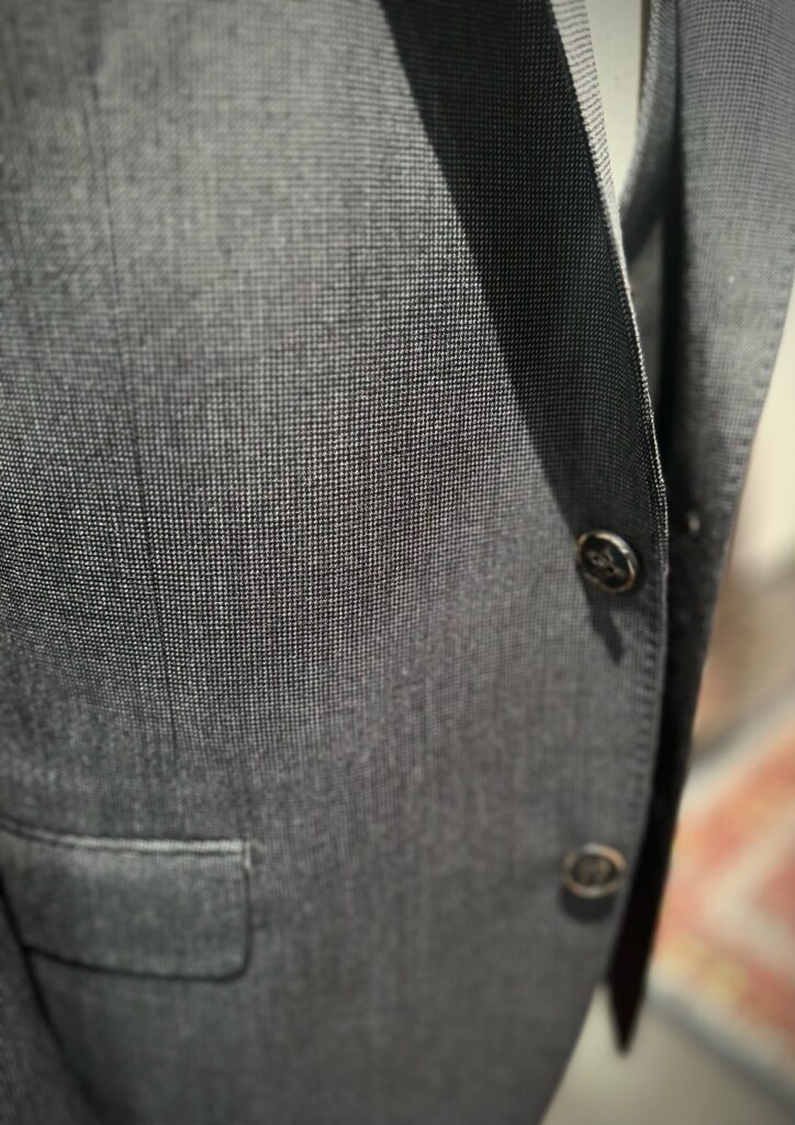 こちらは英国ハリソンズの生地でチャコールグレーのピンヘッドです!