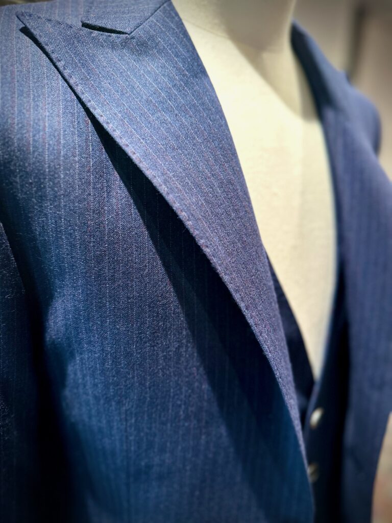 ゼニアのトラベラーは防シワ性と光沢が美しい特徴の生地ですが、この生地は少し起毛感のあるトラベラーで季節感を感じる素敵な1着ですね。