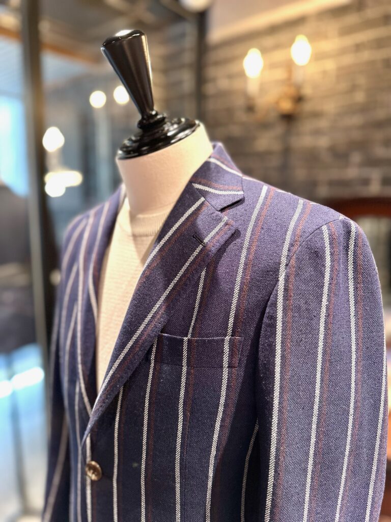 そんな訳で本日はオンオフ兼用で使われるというご要望でお仕立ていただきましたジャケットのご紹介です。