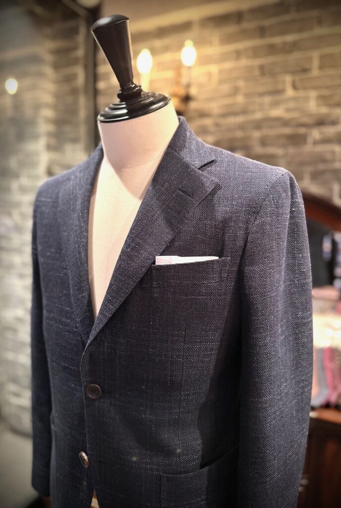 イタリア、ラニフィーチョ・ティ・ジー・ディ・ファビオのウール&リネン生地でジャケットをオーダーいただきました。
