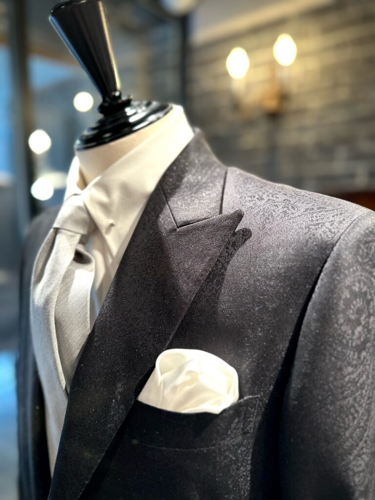 シックながらもステージでライトを浴びた際に華やかさも兼ね備えるよう、ラメが織り込まれた生地をチョイスさせていただきました。