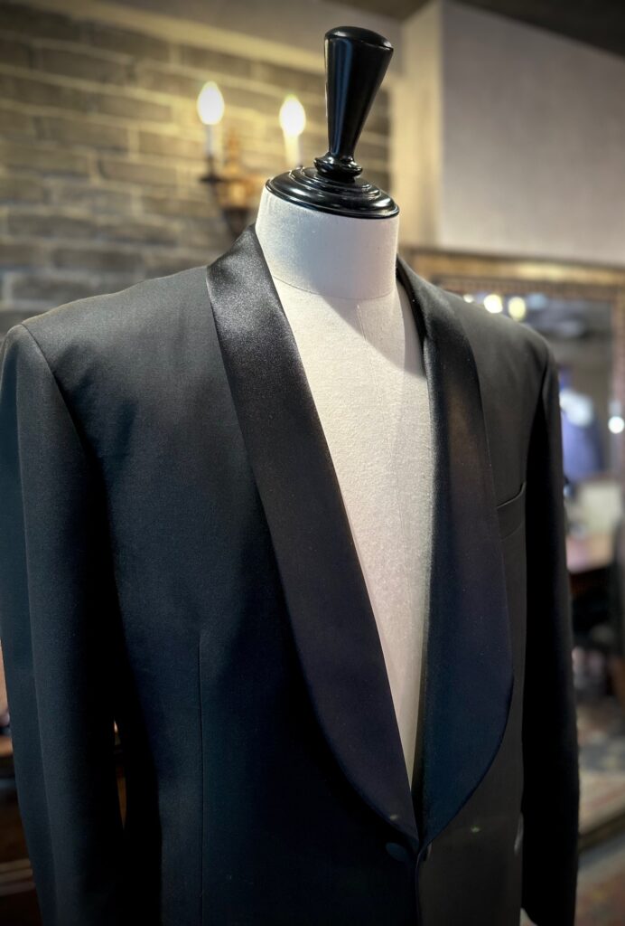 襟はショールカラーですが、鍛えておられて物凄く体格がいい方でしたので、貧相に見えないよう少し太めにすることでバランスを合わせました。