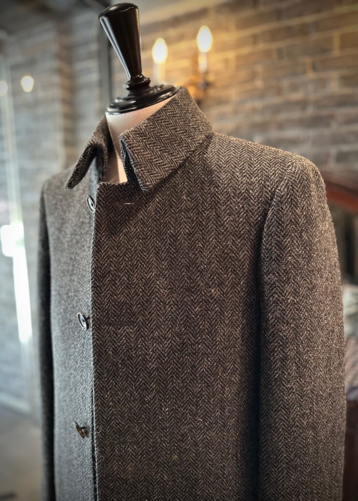 Lovat(ラバット)社よりTALLAのチャコールグレーのヘリンボーンでステンカラーコートをお世話になりました。