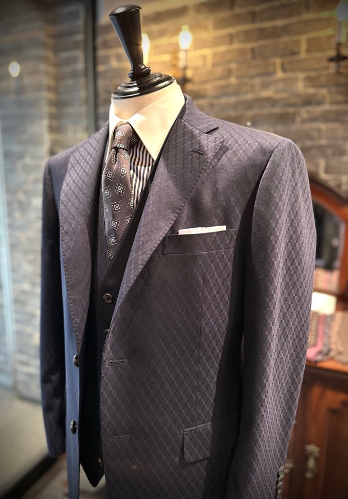 シンプルなネイビー無地よりは少し表情のある1着をというご要望でお選びいただきました。