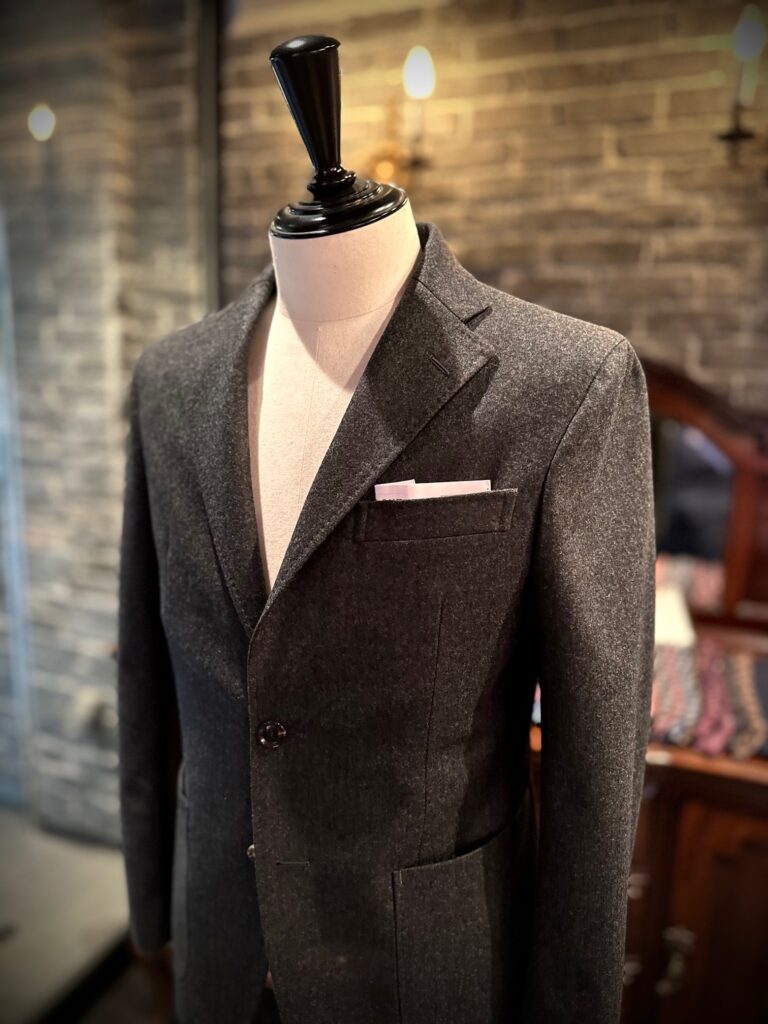 国産フランネルのチャコールグレーでジャケット単品をオーダーいただきました。