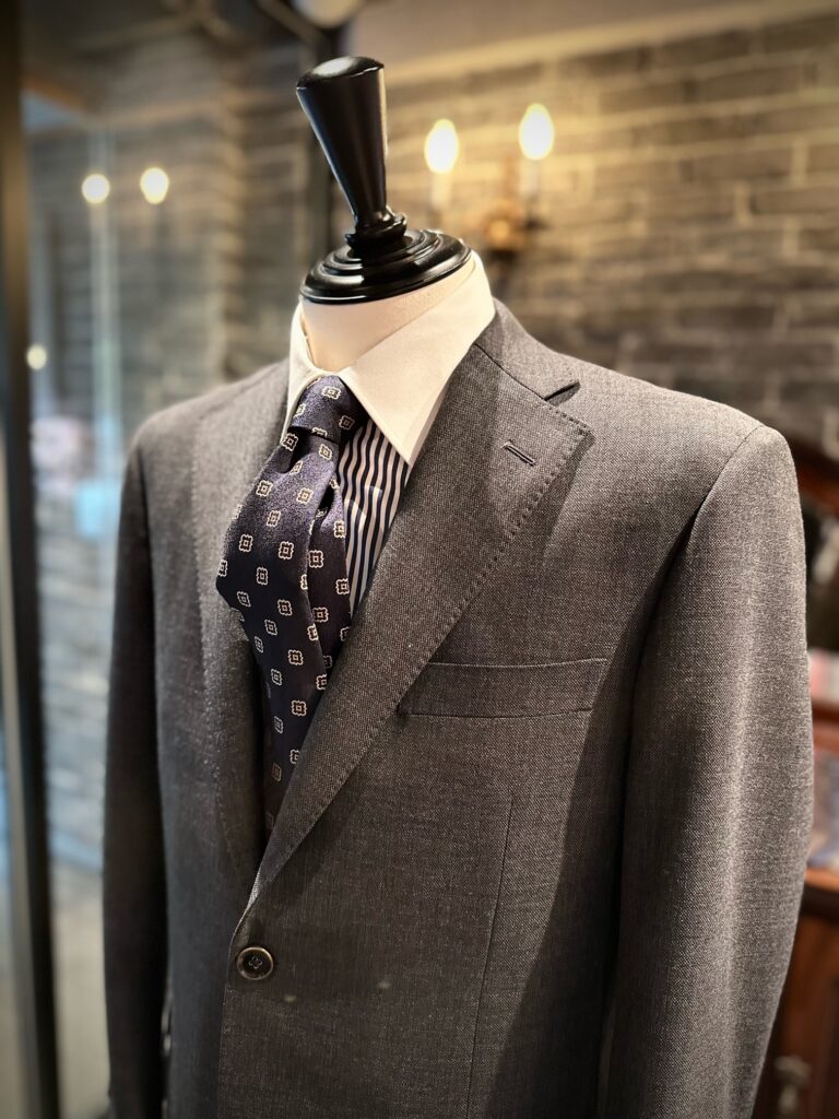 その中からミディアムグレーのシャークスキンでスーツをお世話になりました。