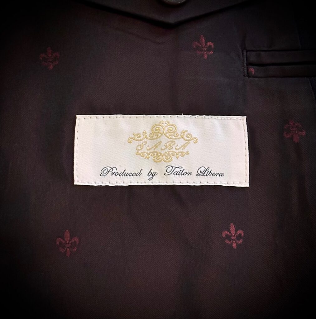 生地の色味が濃く、そこに赤のストライプが入ることで主張しすぎず、馴染むので威圧感のない渋みのある1着に仕上がりました。