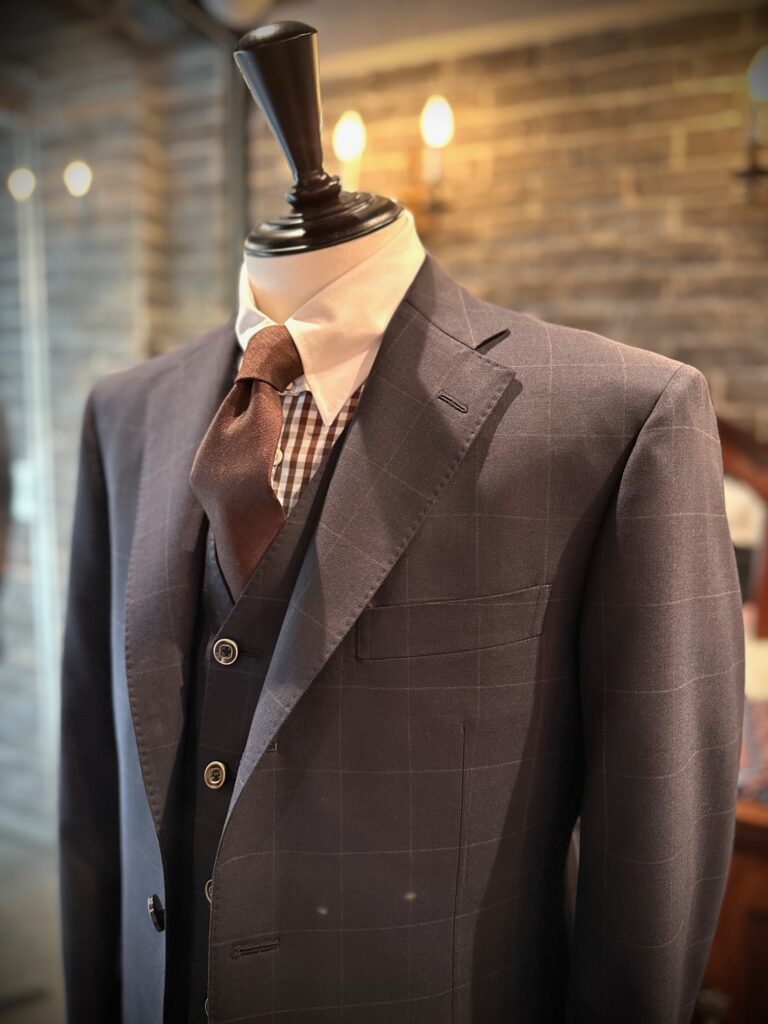【お客様仕上がり品/リベラオリジナル生地 濃紺ウィンドウペーン スリーピース】