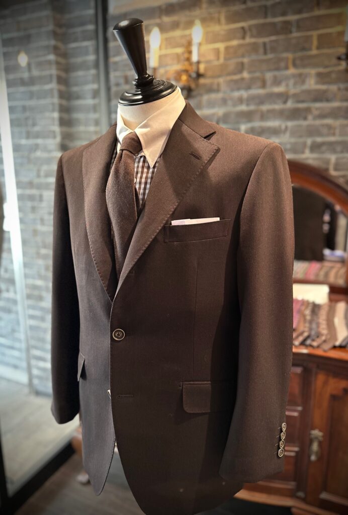 国産、ウィップコードのブラウンでスーツをオーダーいただきました。