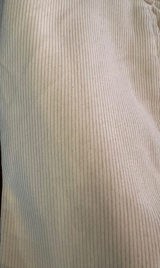 カジュアル使いも出来るようにと細畝のコーデュロイでオフホワイトのパンツをお世話になりました。