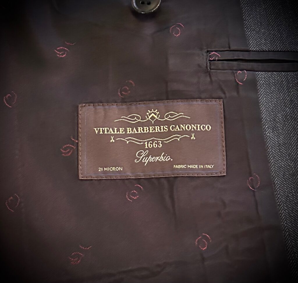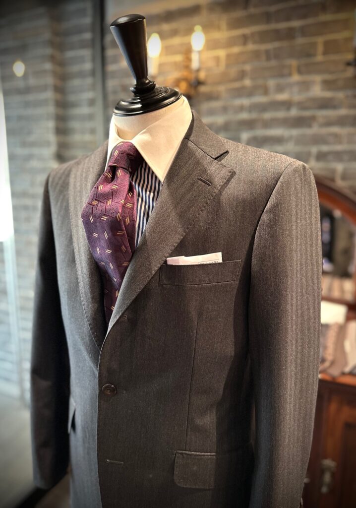 カノニコ・スーパービオのグレーヘリンボーンでスーツをオーダーいただきました。
