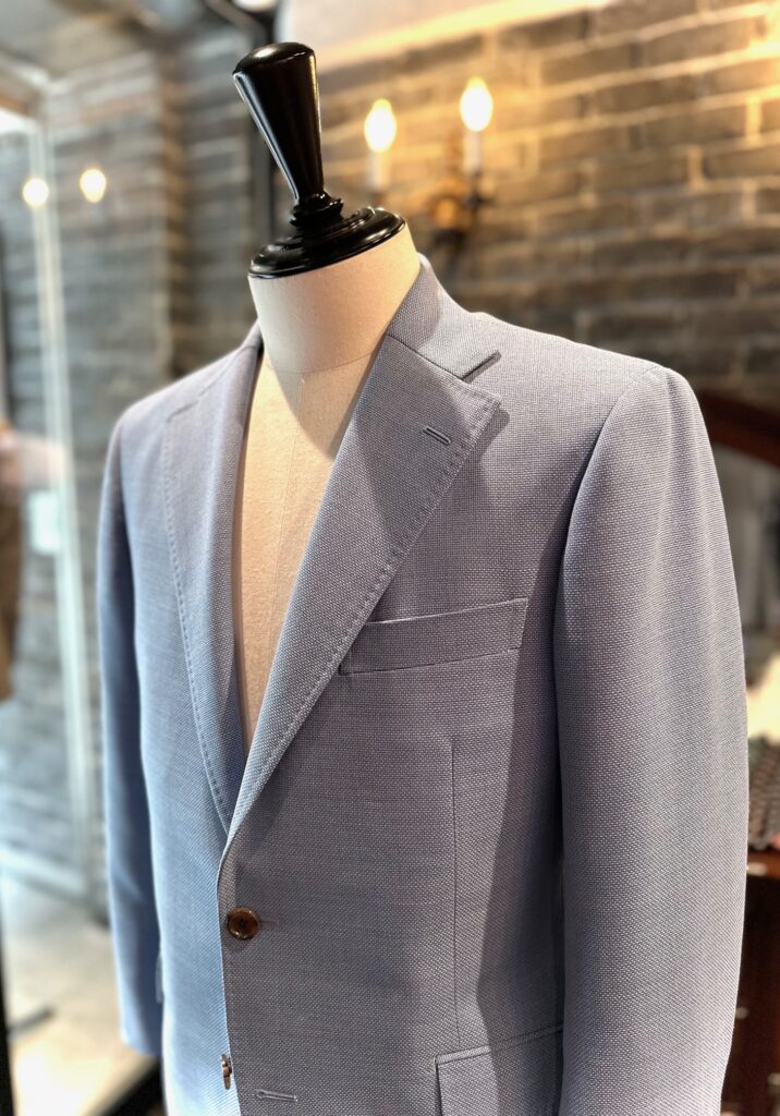 スーツに使用する毛芯より薄手の毛芯を使用し、非常に軽快で涼しい仕立てにさせていただいております。