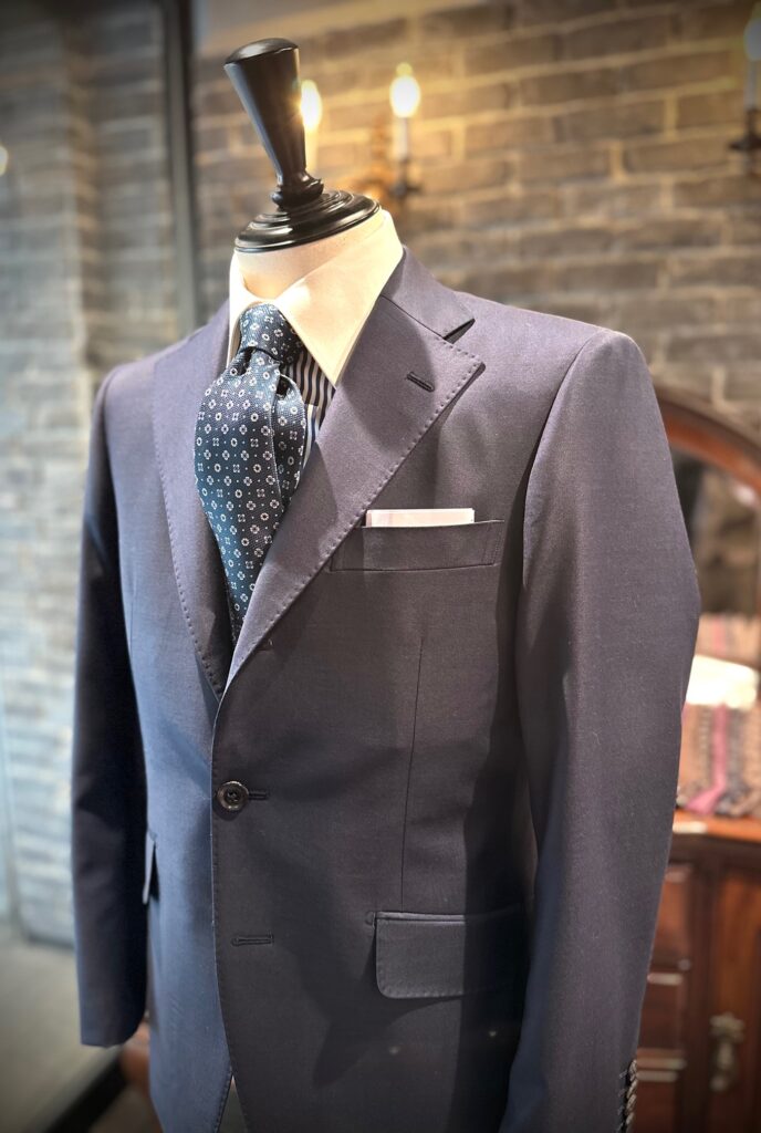 カノニコ・ペレニアルのブライトネイビーでスーツをオーダーいただきました。