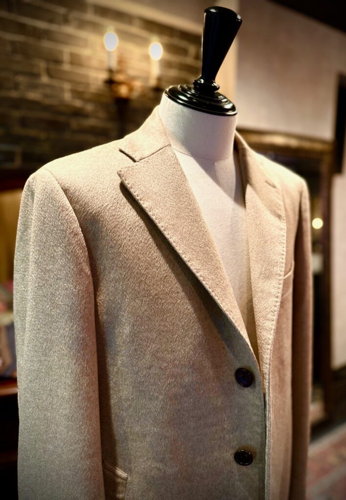 コロンボのベージュカシミアでチェスターコートをオーダーいただきました。