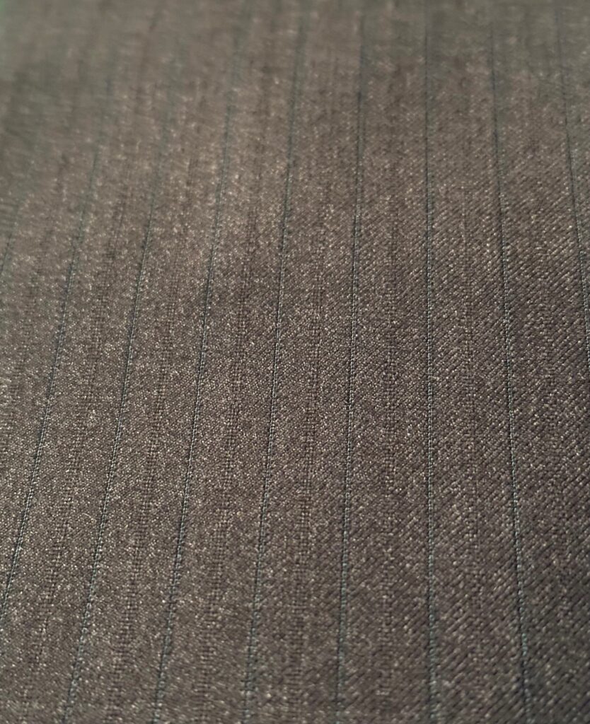 こちらの生地、遠目ではわかりにくいのですが翡翠を彷彿とさせるグリーンのストライプが入っており、こちらが良いアクセントになっております。