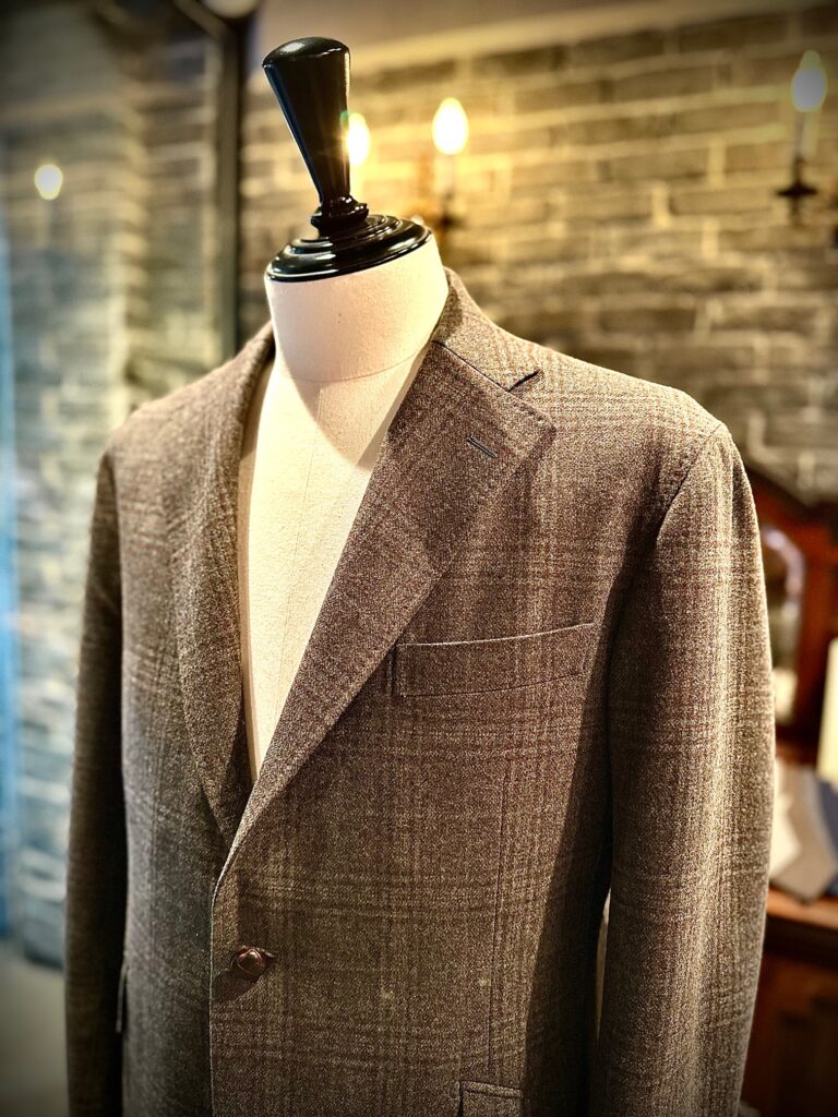 そもそも同社の生地は柔らかな風合いが魅力なのですが、こちらの生地はカシミアも混紡しているのでその柔らかさがより一層際立った仕上がりとなっております。