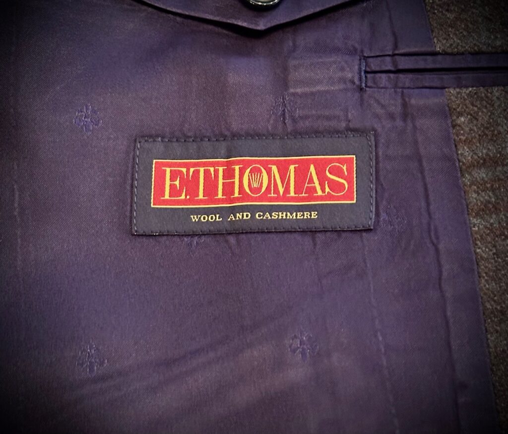 イートーマスのオリーブグリーンのチェック柄でジャケットをオーダーいただきました。