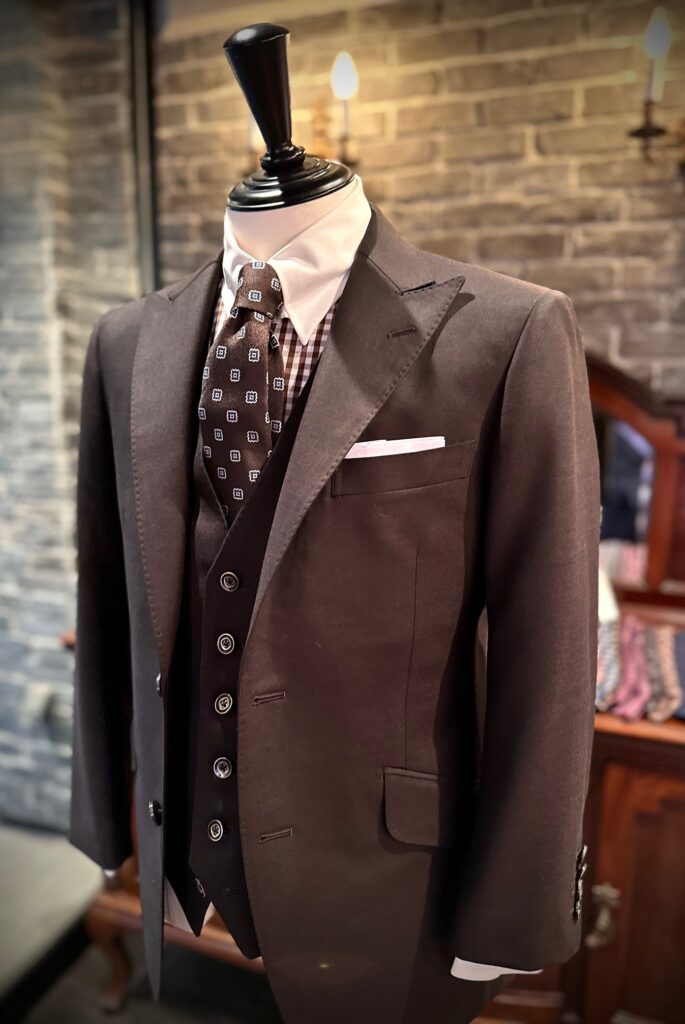 英国フィンテックス オブ ロンドンのダークブラウンでスリーピースをお世話になりました。