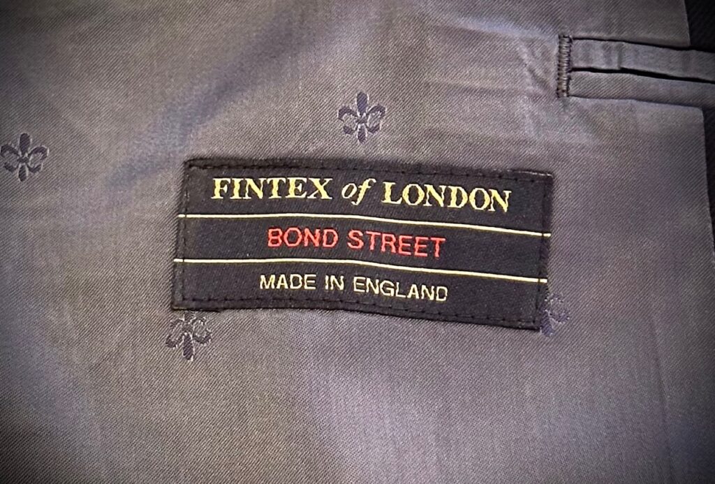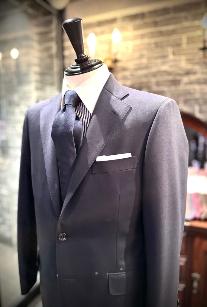 フィンテックスオブロンドンの濃紺無地でスーツをオーダーいただきました。