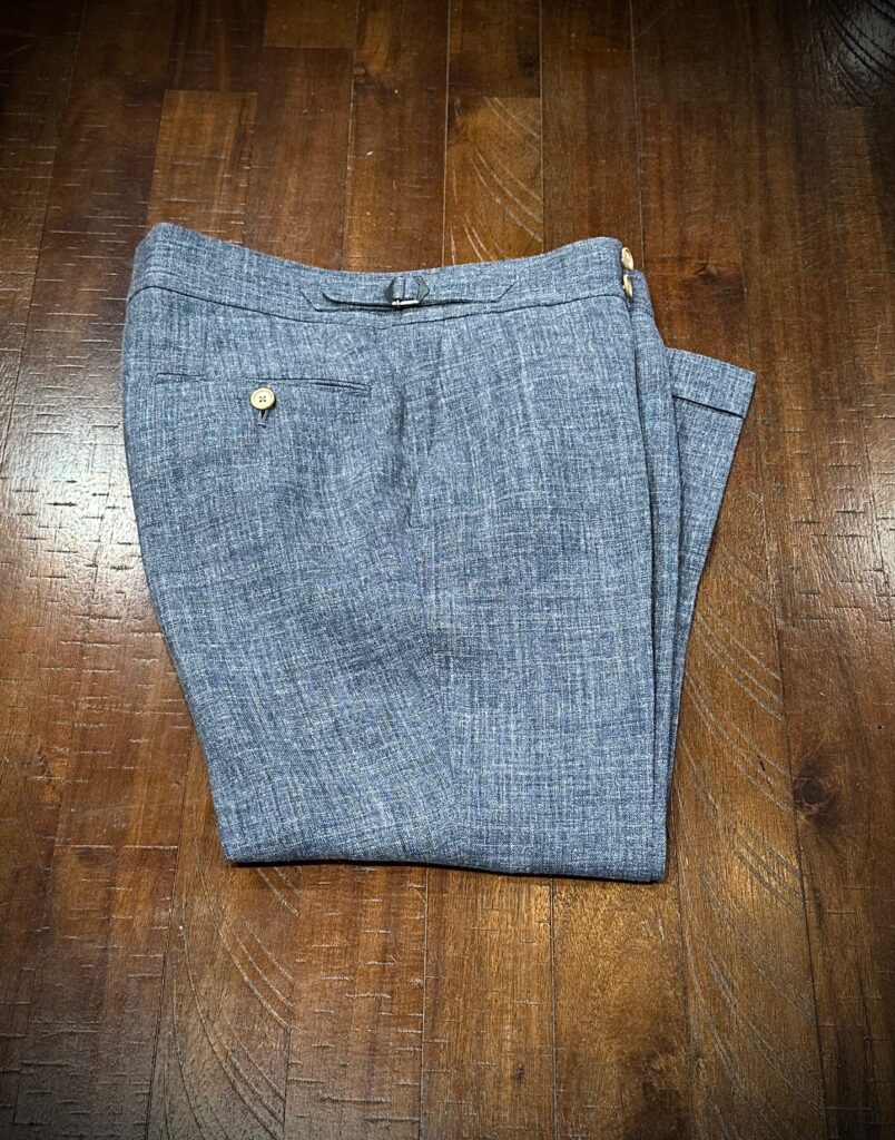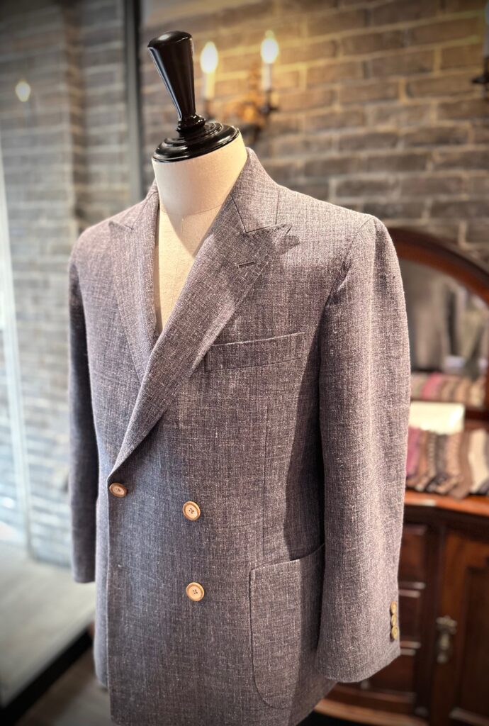 英国ハリソンズのリネン混の生地でセットアップをオーダーいただきました。