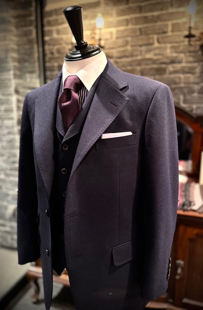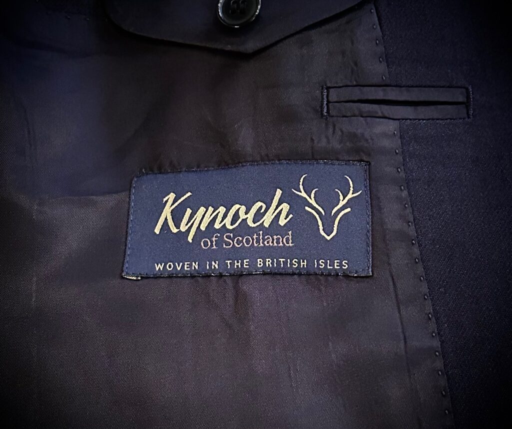 スコットランドの老舗ミルKynoch(カイノック)が手がけるChurchill(チャーチル)で濃紺のスリーピースをオーダーいただきました。