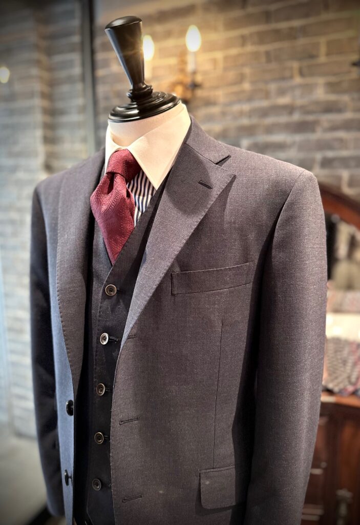 本日も個人的に大好物の生地でお世話になりましたスーツが仕上がってまいりましたのでご紹介させていただきます。
