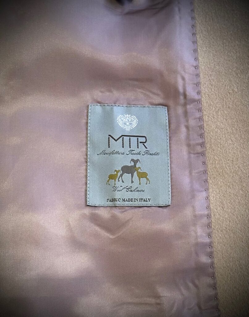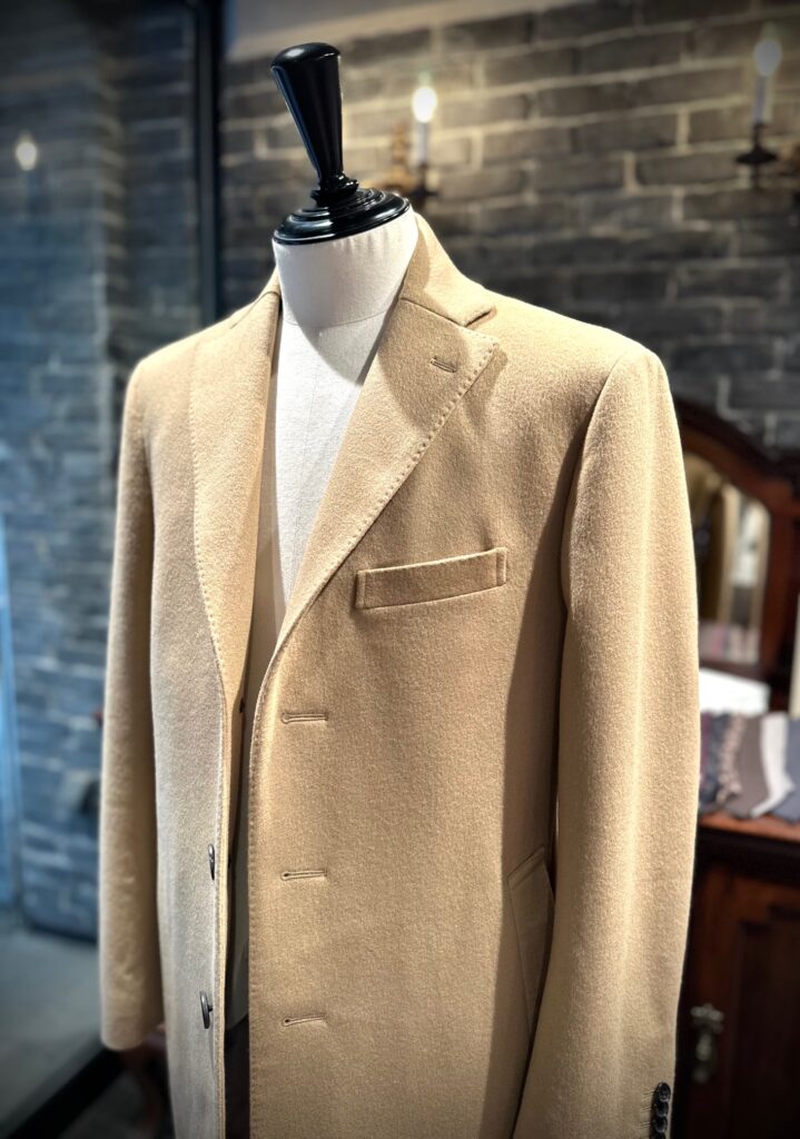 イタリアMTRのカシミア混のベージュでチェスターコートをオーダーいただきました。