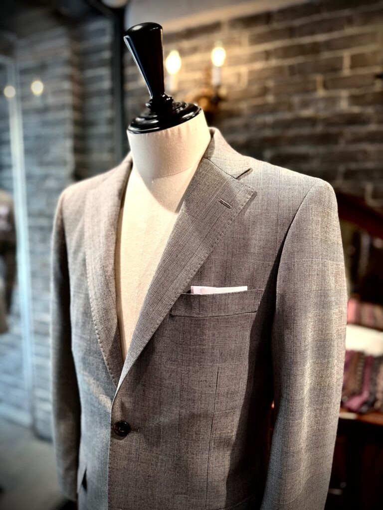 英国サヴィルクリフォードのグレンチェックでジャケットをオーダーいただきました。