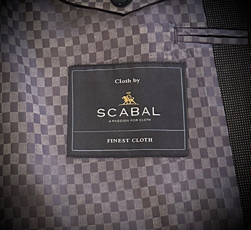 スキャバルのチャコールグレーのピンヘッドでスーツをオーダーいただきました。