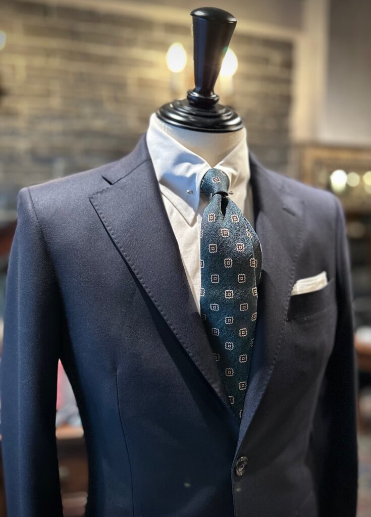 英国スミスウールンズの濃紺無地でスーツをお世話になりました。