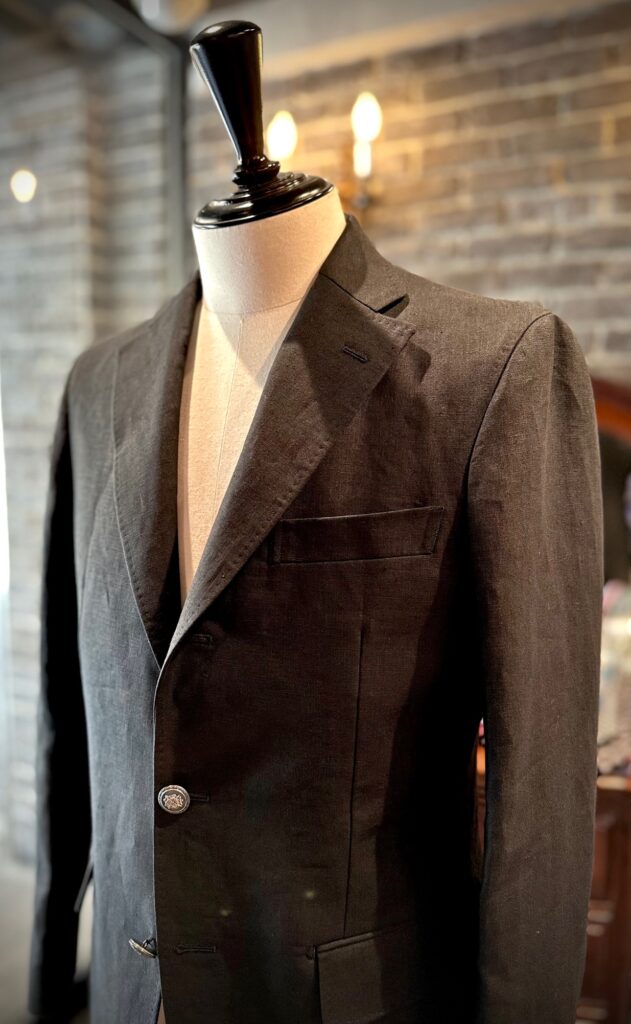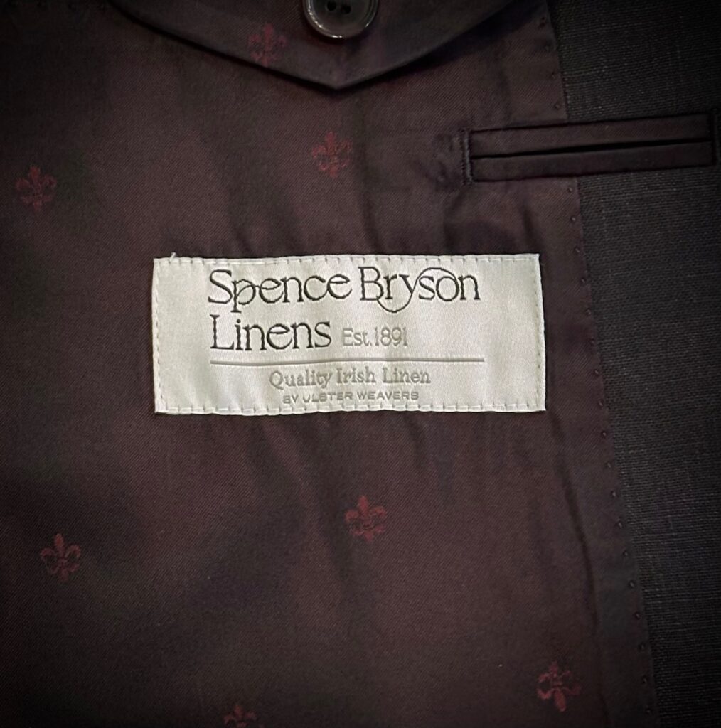 アイリッシュリネンの代名詞といえる、スペンスブライソンの生地でセットアップをお世話になりました。