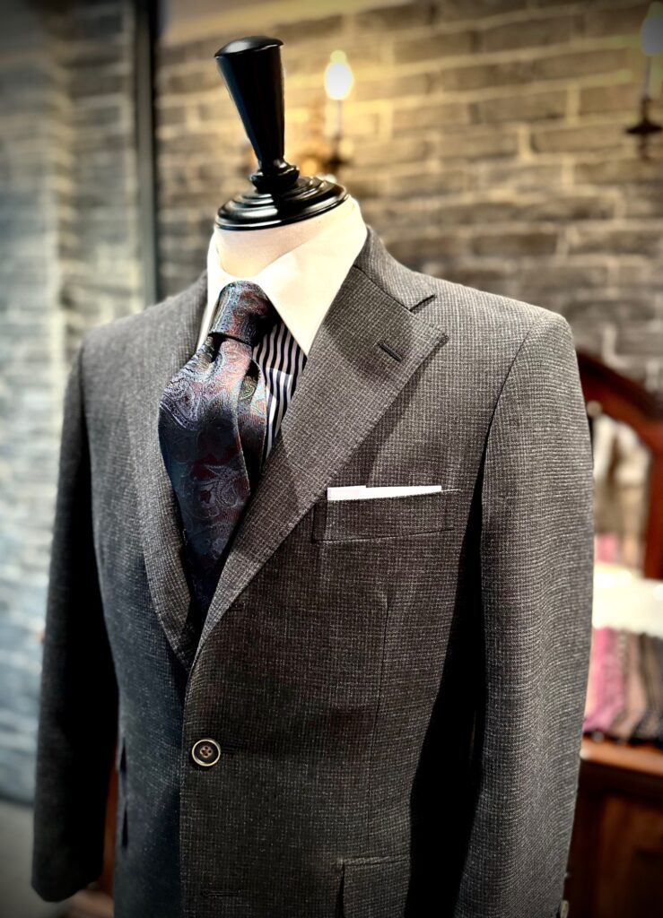 ウィリアムハルステッドのチャコールグレーでスーツをオーダーいただきました。