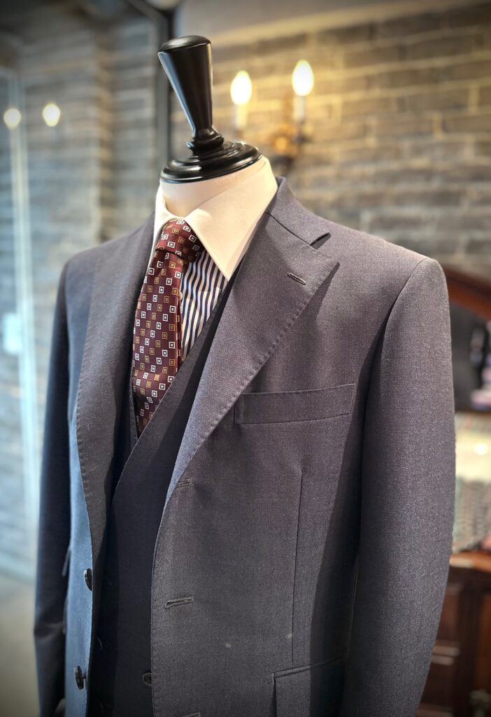 ウィリアムハルステッドのモヘア混の生地でスリーピースをお世話になりました。