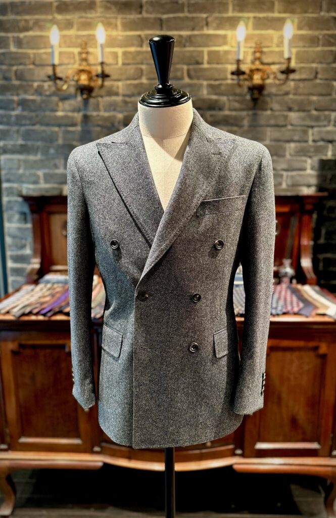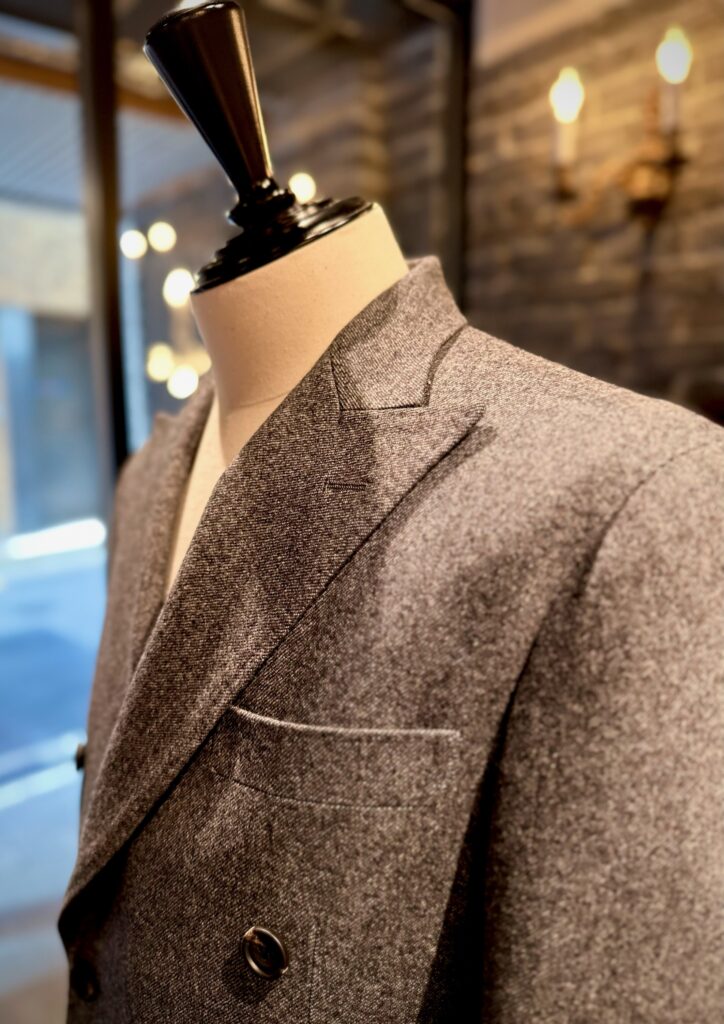 さて、本日は普段スーツは着られないけど何かの時に軽く羽織られるようのジャケット、そしてカジュアルでも一味違うオシャレに挑戦されたいという方のダブルのセットアップが仕上がりましたのでご紹介させていただきます!