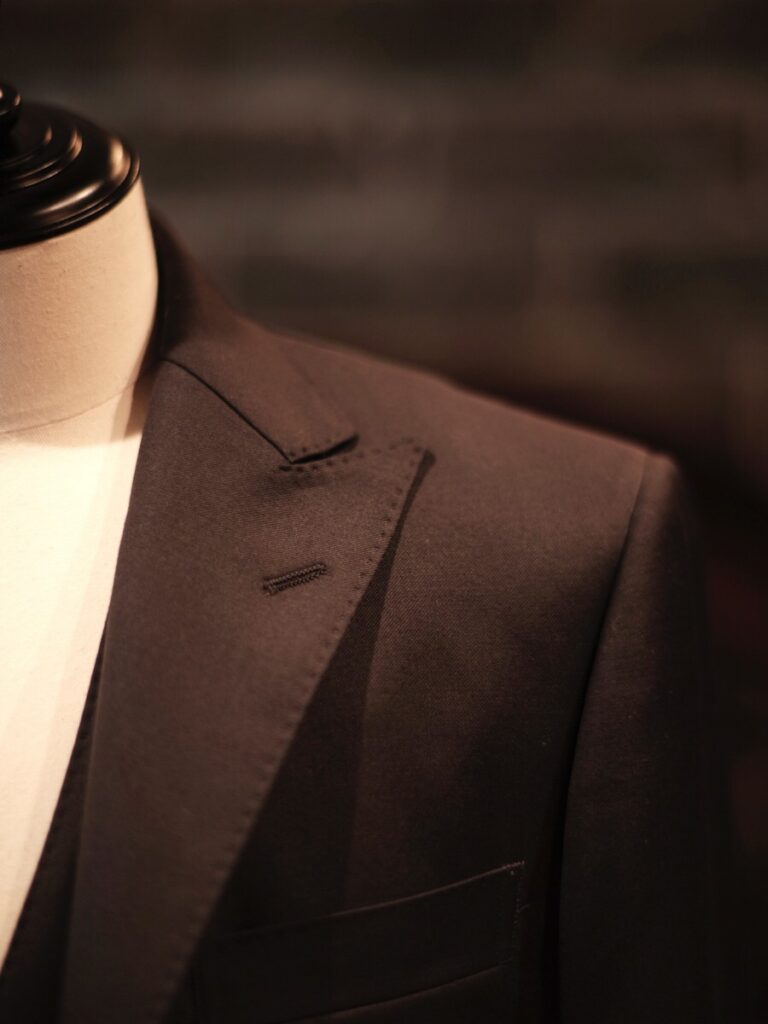 この型紙と国内一流の職人による縫製で仕立てられるスーツ。